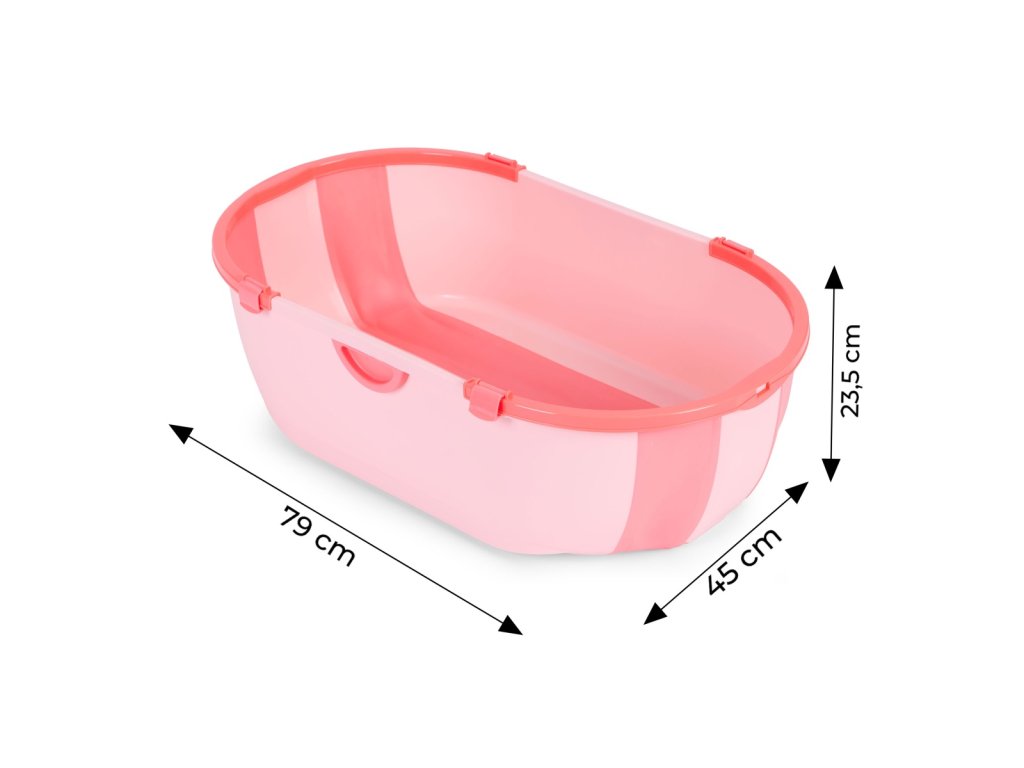 Dětská skládací cestovní vanička s odtokem, růžová