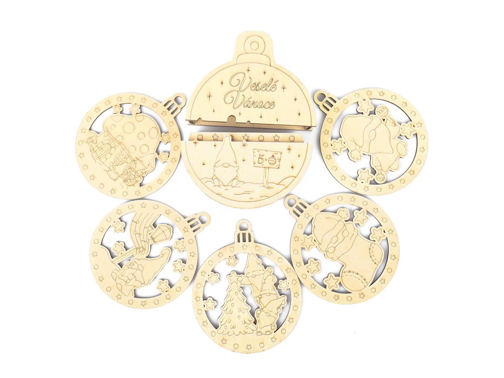 Obsahuje 5 ks vánočních ozdob v krabičce