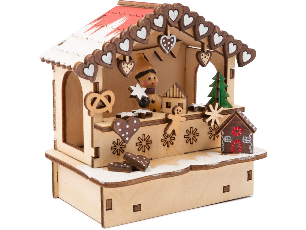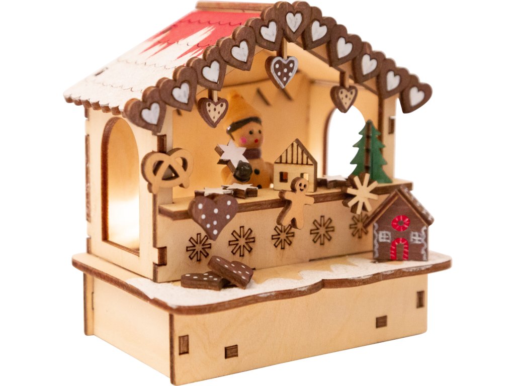 Tyto tři malé dřevěné vánoční chaloupky potěší zákazníky svými propracovanými detaily. Nepřímé osvětlení baterií ve stánku s kořením, stánku s perníkem a další... Stejně jako třpytivý sníh vytvářejí atmosféru vánočního prostředí. Baterie nejsou součástí balení.