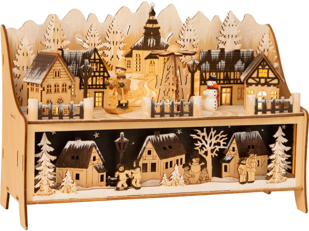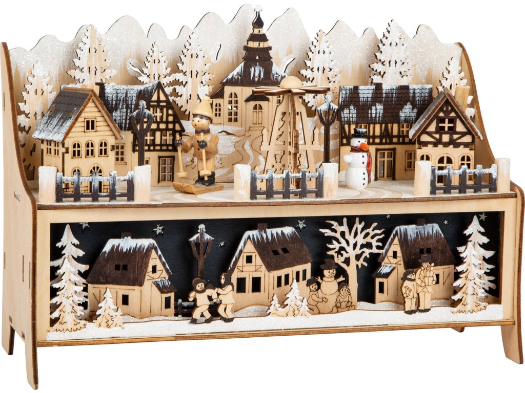 Představte si okamžik, kdy se první sníh tiše snáší na vaše oblíbené zimní městečko, každý dům je jemně pokrytý bílou peřinou, a vy stojíte uprostřed této zimní pohádky. Přesně tento kouzelný pocit vám přinese small foot Vánoční dekorační lampa Zimní sen – vaše vlastní zimní čarovné městečko, které promění každý prostor ve svět plného vánočního kouzla. Vytvořte si doma svou vlastní zimní idylu. Tato detailně propracovaná dřevěná lampa není jen obyčejnou dekorací; je to mistrovské dílo, které v sobě ukrývá příběhy zimní radosti. Pozorujte, jak běžkaři švihají kolem vánočního stromku, jak sněhulák vesele mává a jak domky jemně září v zimní tmě. Každý detail je pečlivě vyřezáván, aby vytvořil dokonalý obraz zimního veselí.