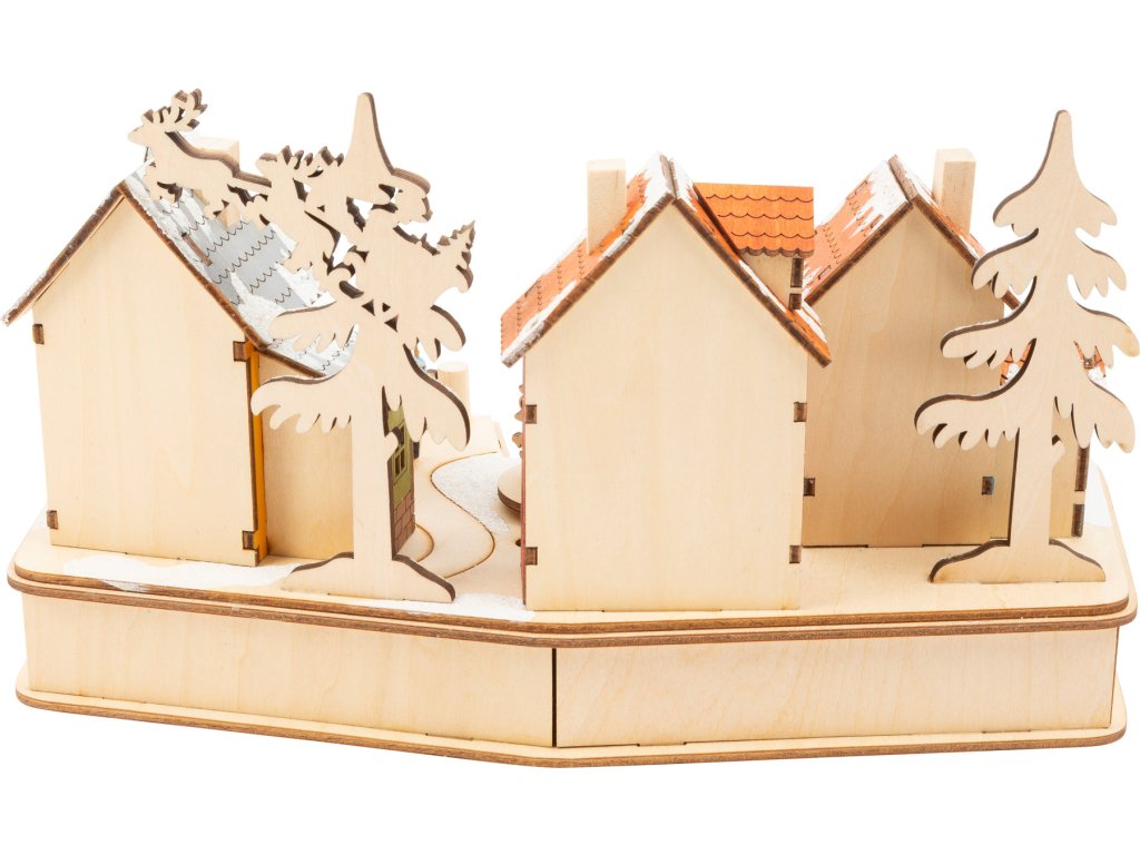 S touto bohatě zdobenou vánoční vesnicí se vánoční duch jistě nastěhuje i k vám domů. Barevné domky jsou vyrobeny z jemně vyřezávaného dřeva poskytující nepřímé osvětlení. A je tady ještě jedna skvělá věc: Vánoční stromeček uprostřed vesnice se po zapnutí lampy otáčí a pokud se podíváte pozorně, můžete dokonce spatřit Santu Clause a jeho sáně. Baterie nejsou součástí balení.