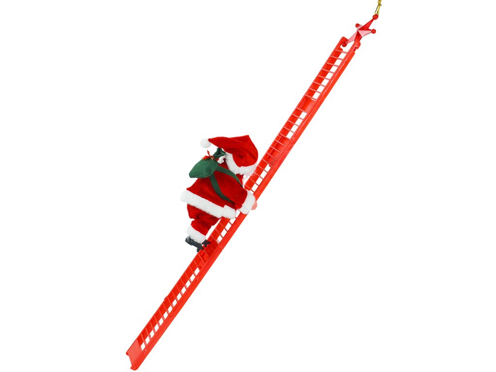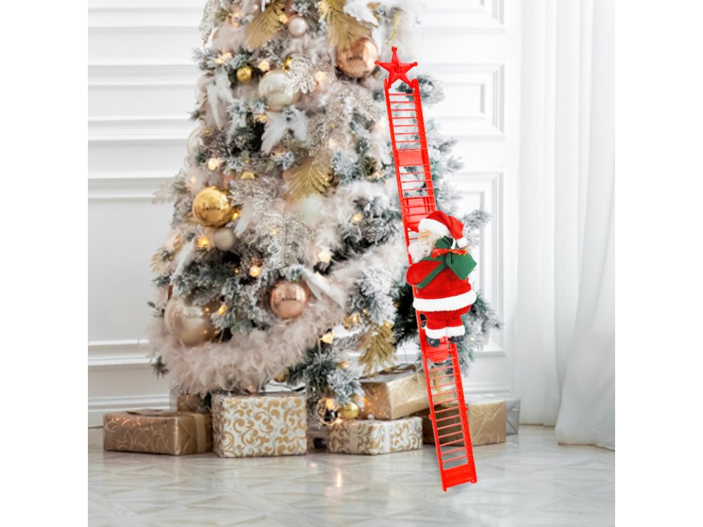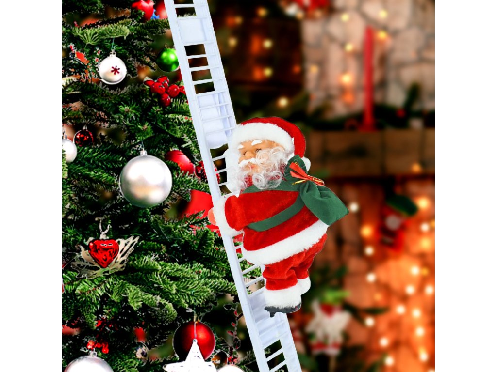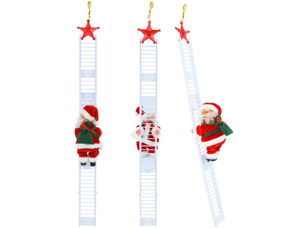 Vánoční dekorace - Postavička Santy Clause, která leze po žebříku a hraje "rolničky rolničky"