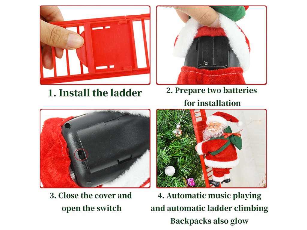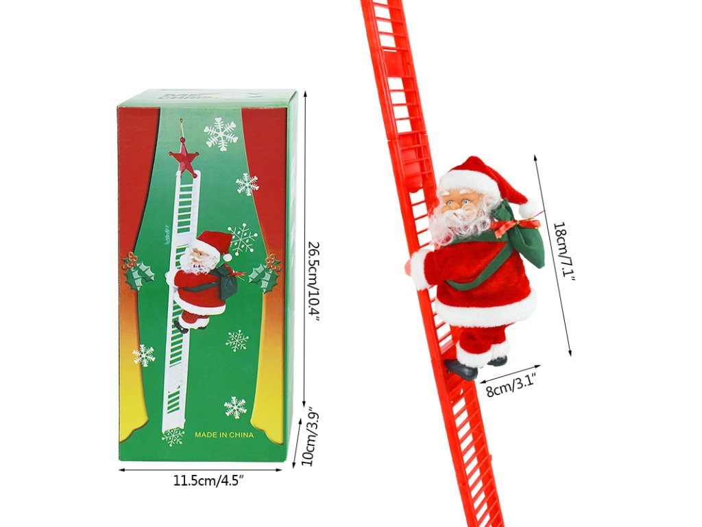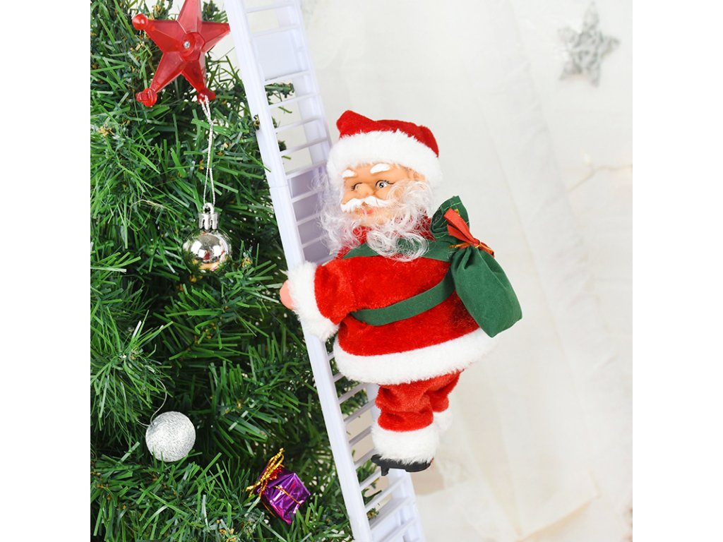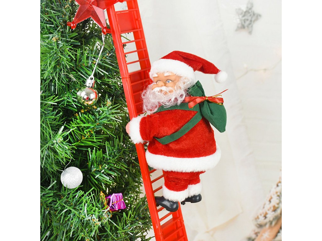Vánoční dekorace - Postavička Santy Clause, která leze po žebříku a hraje "rolničky rolničky"