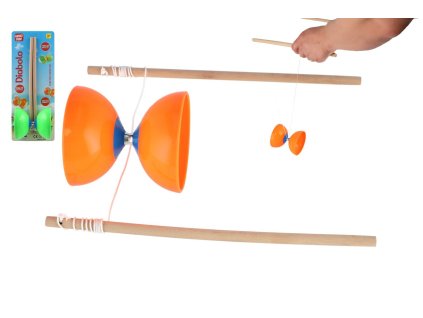 Diabolo velké sada plast/dřevo 35x12cm 2 barvy na kartě