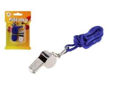 Píšťalka se šňůrkou kov/látka 5cm na kartě