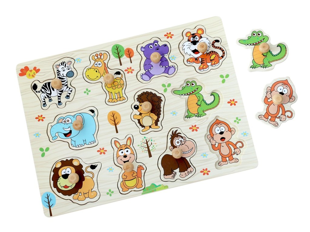 Krásné vkládací puzzle na pevné desce přináší kouzlo života v divočině přímo do dětských rukou! Děti se mohou seznámit se zvířátky na safari prostřednictvím 11 vkládacích dílků, které lze snadno uchopit. Skládačka podporuje rozvoj jemné motoriky, koordinace ruka-oko a zároveň učí rozpoznávat divoká zvířátka. Díky pevnému dřevěnému provedení je puzzle odolné a vydrží i časté používání malými dětmi.