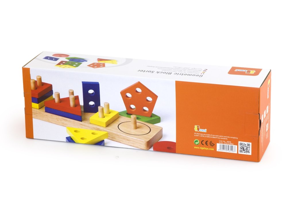 Dřevěná vkládačka s barevnými tvary. Uči děti rozeznávat tvary, barvy a správné motorice. Rozměry hračky cca 36,5 x 7,5 x 8 cm. Rozměry balení cca 38 x 8,5 x 12 cm. Věk 2+Doplňkové parametry