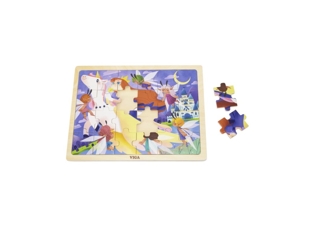 Dřevěné puzzle 24 dílků s pohádkovým motivem. Rozměry 30x22,5x1 cm. Věk 24m+Doplňkové parametry