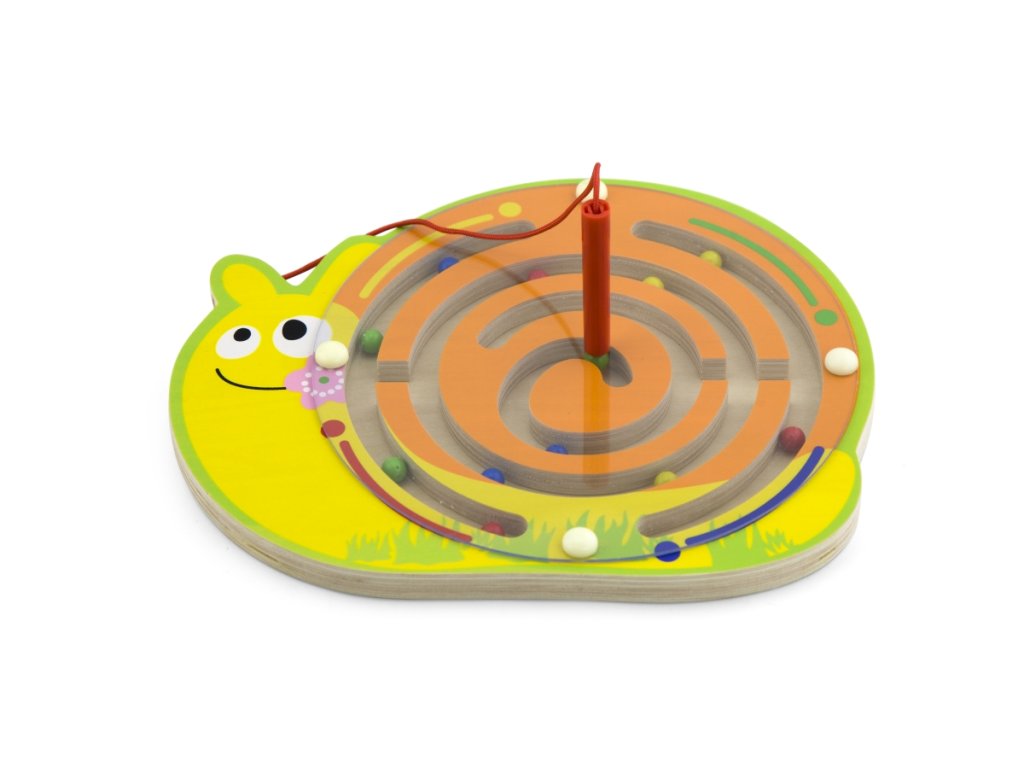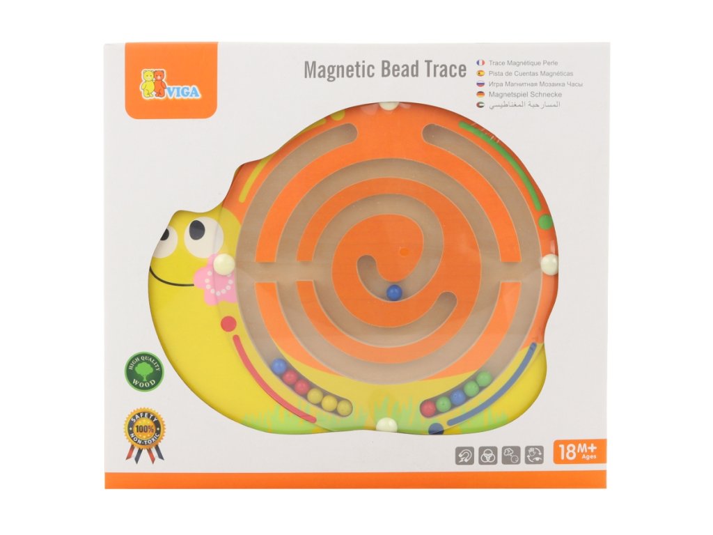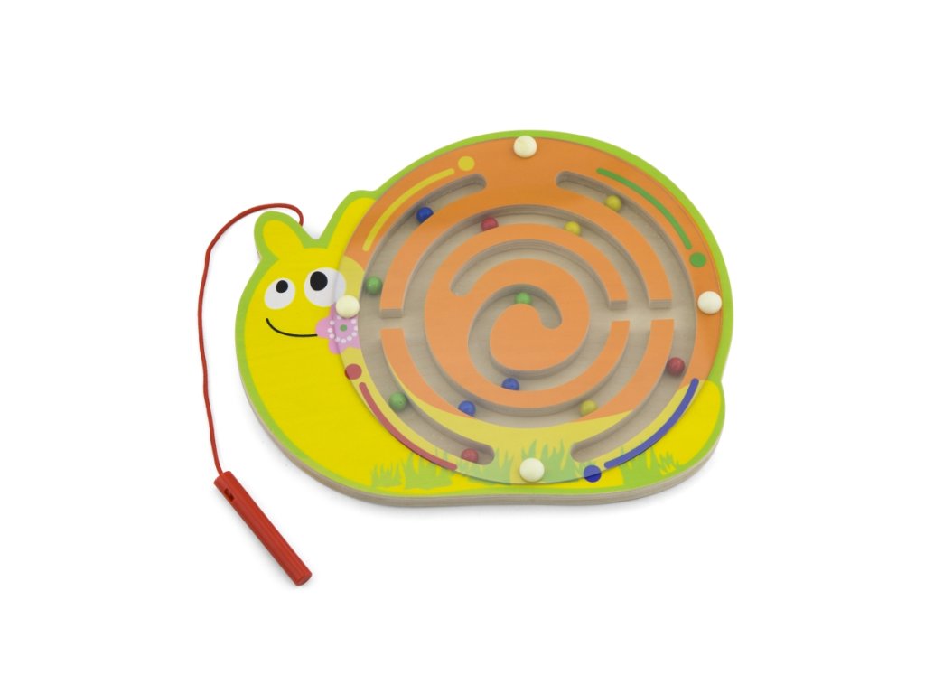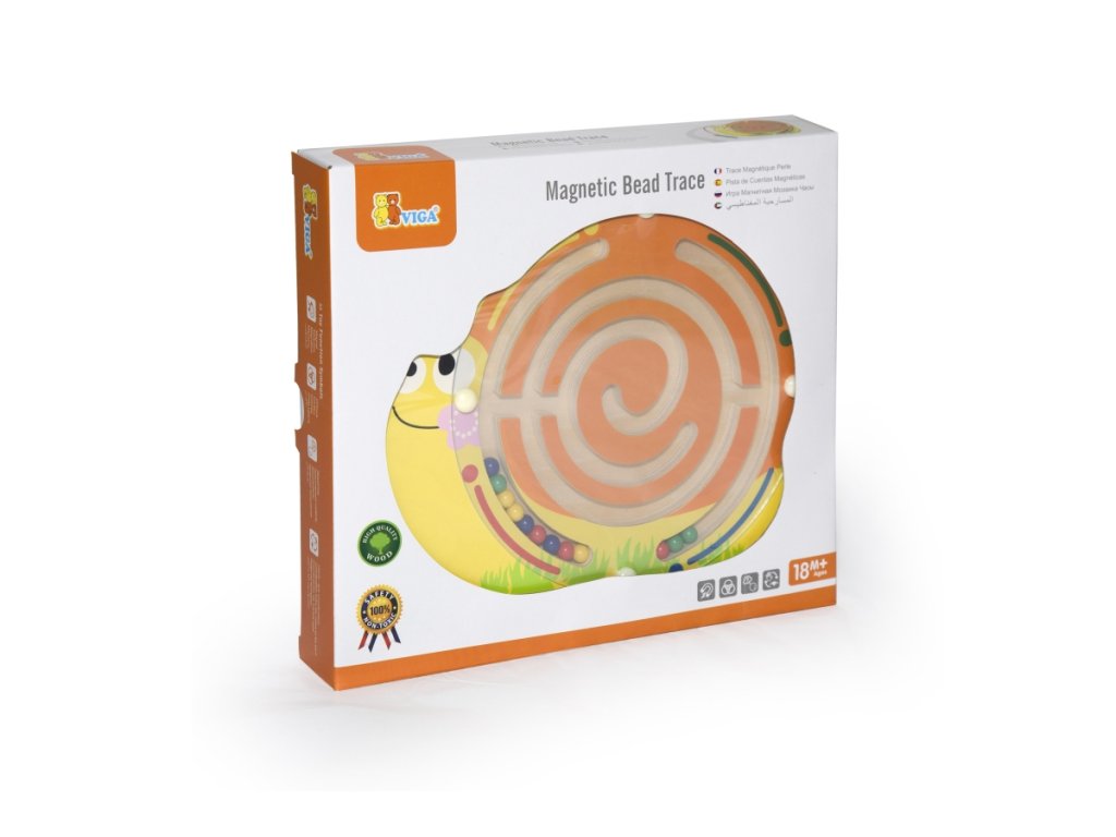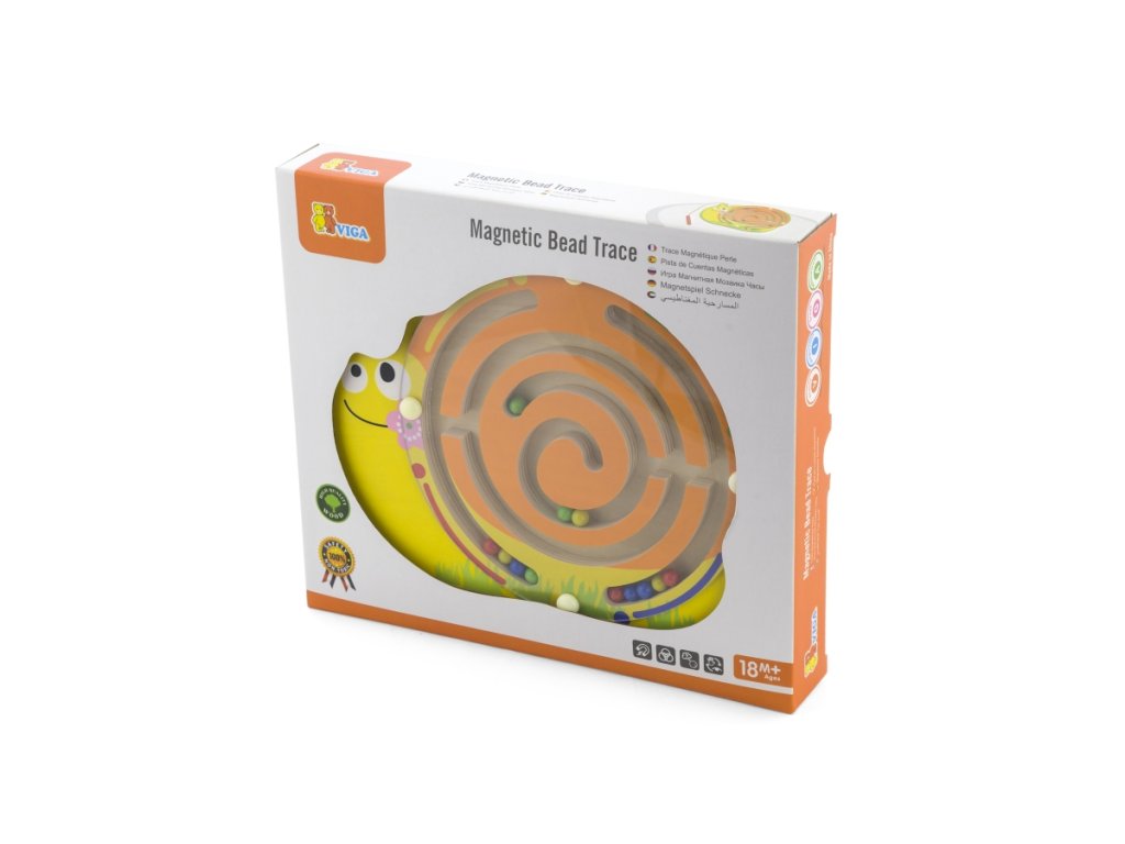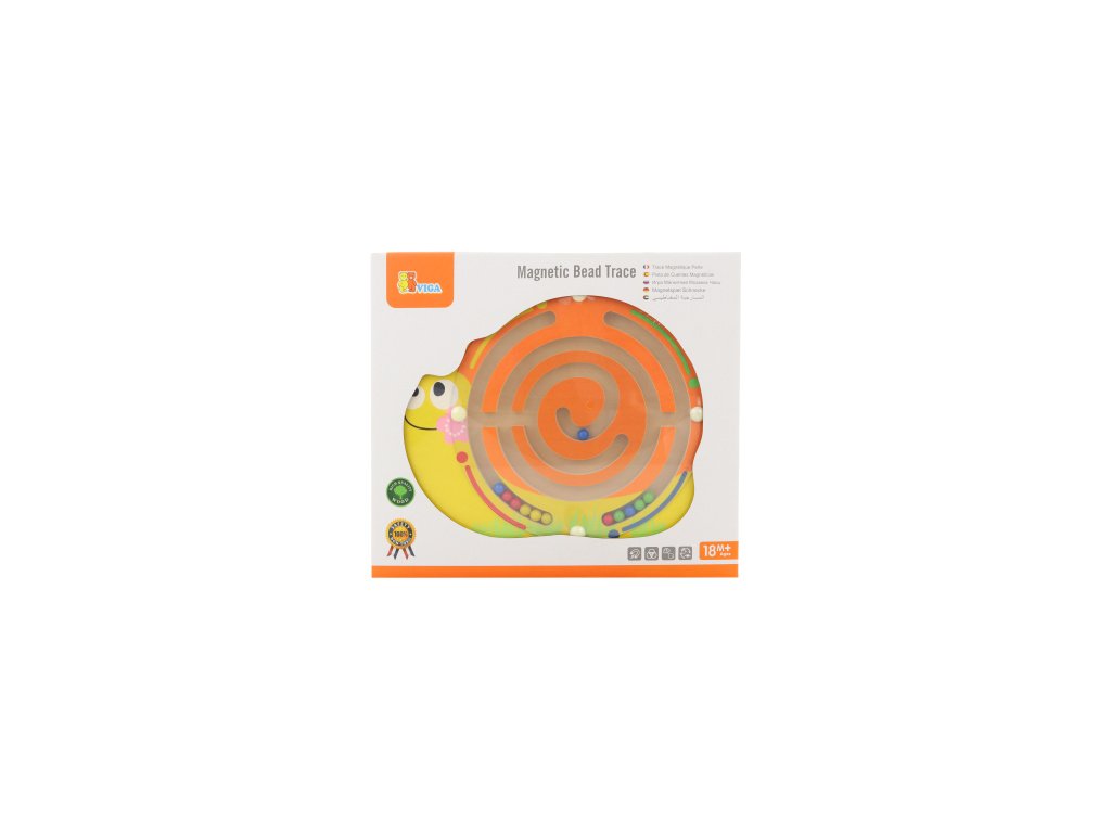 Dřevěný magnetický labyrint s kuličkami ve tvaru šneka. Rozměry cca 21,5 x 19 cm. Rozměry balení cca 25 x 22 x 4 cm. Věk 18m+Doplňkové parametry