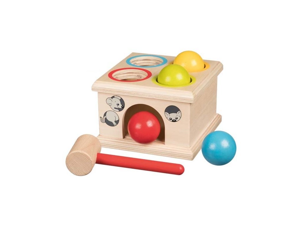 - balení obsahuje domeček s otvory, 4 kuličky, kladívko