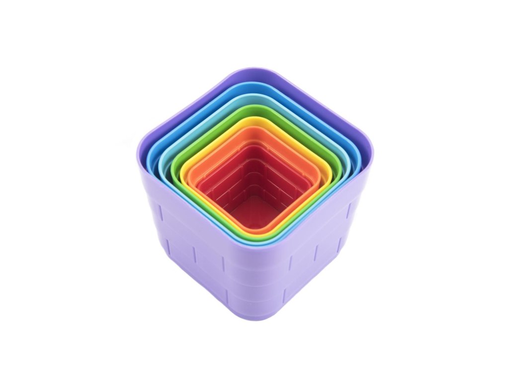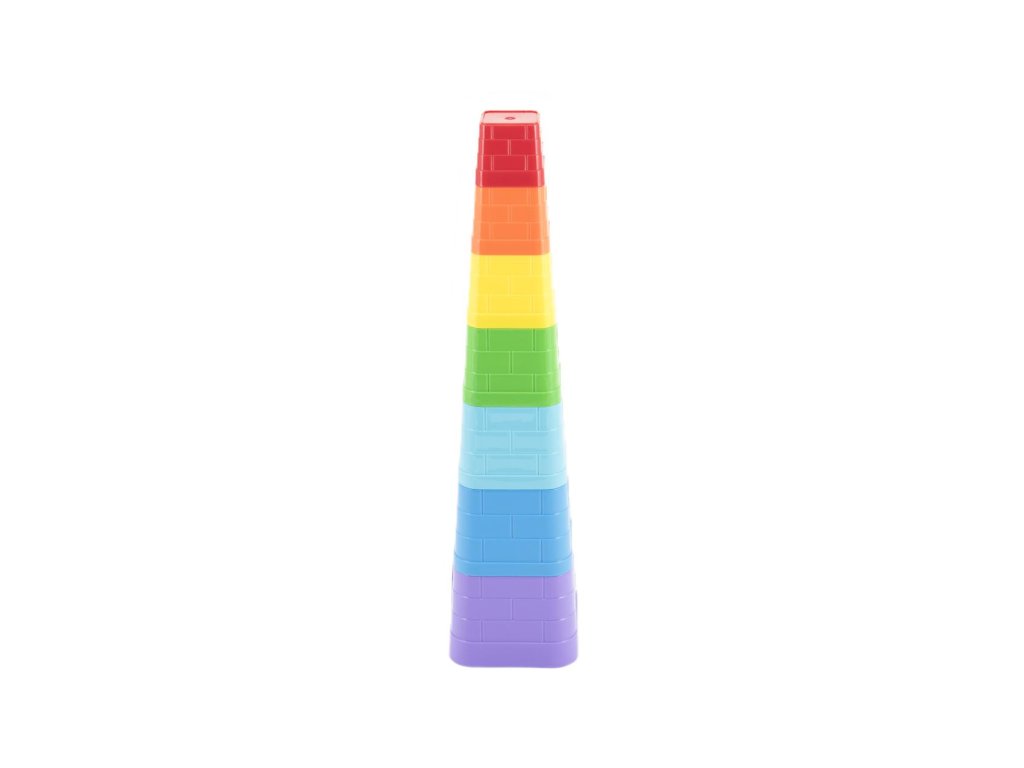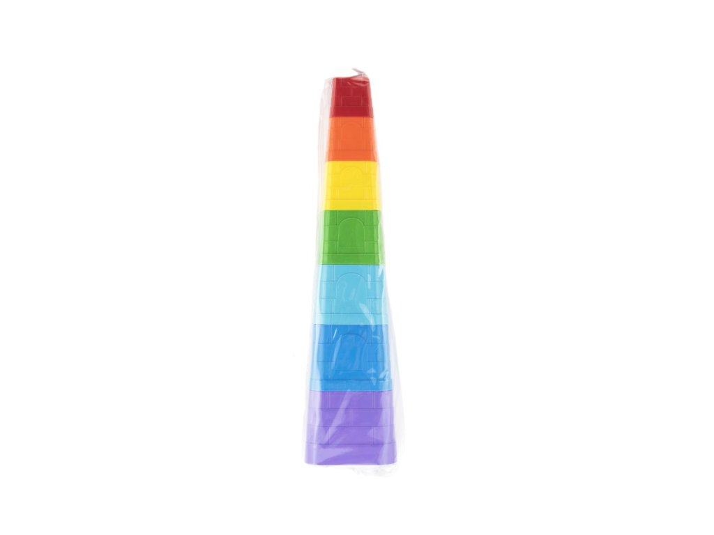 Kubus pyramida skládanka plast hranatá barevná 7ks v sáčku 12m+