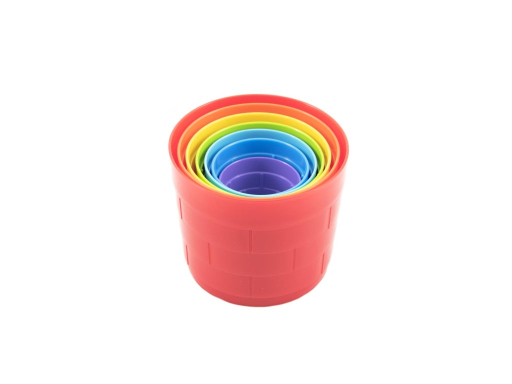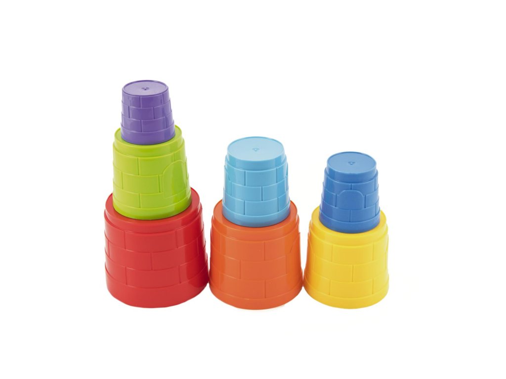 Kubus pyramida skládanka plast kulatá barevná 7ks v sáčku 12m+