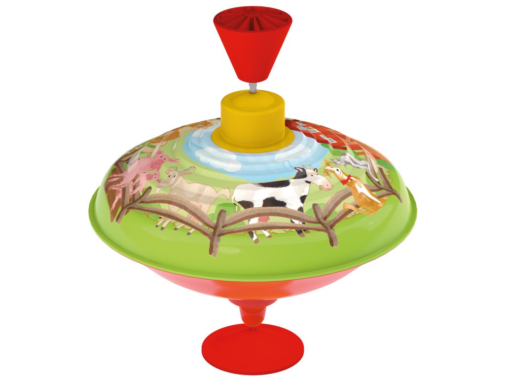 Pestrobarevná hrací káča s motivem statku se stane oblíbenou hračkou vašich dětí. Stačí povytáhnout a stlačit páčku, káča se začne točit a vydávat typický zvuk.