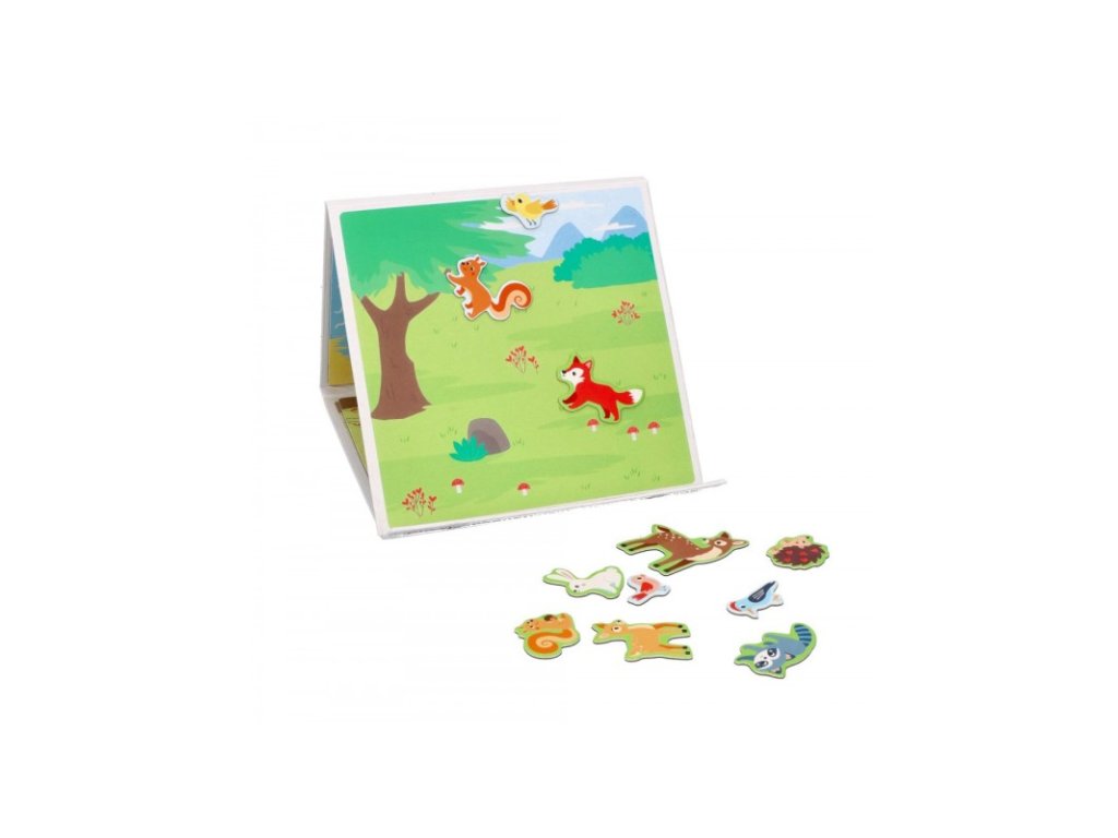 Skládačka, ale také magnetické puzzle je výborná hračka, která rozvíjí dětskou kreativitu a fantazii. Hru lze hrát dvěma způsoby. První verze zahrnuje aranžování puzzle na magnetických tabulích s pozadím. Druhou možností je magnetická tabule s 11 magnety s lesními zvířátky. To vám dává příležitost vytvořit si vlastní příběhy a scény s vašimi oblíbenými lesními zvířaty.