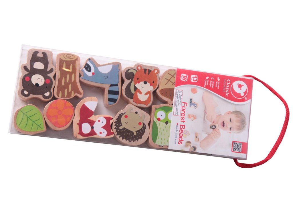 Barevná dřevěná navlékačka s motivy lesních zvířátek přináší dětem zábavu i podporu rozvoje jemné motoriky. Sada obsahuje 13 dílků – medvídek, liška, ježek, sovička a další milé postavičky s velkým otvorem pro snadné navlékání na šňůrku. Při hře si děti trénují koordinaci, trpělivost a rozpoznávání tvarů.Rozměr balení: 9,5 × 26 cm