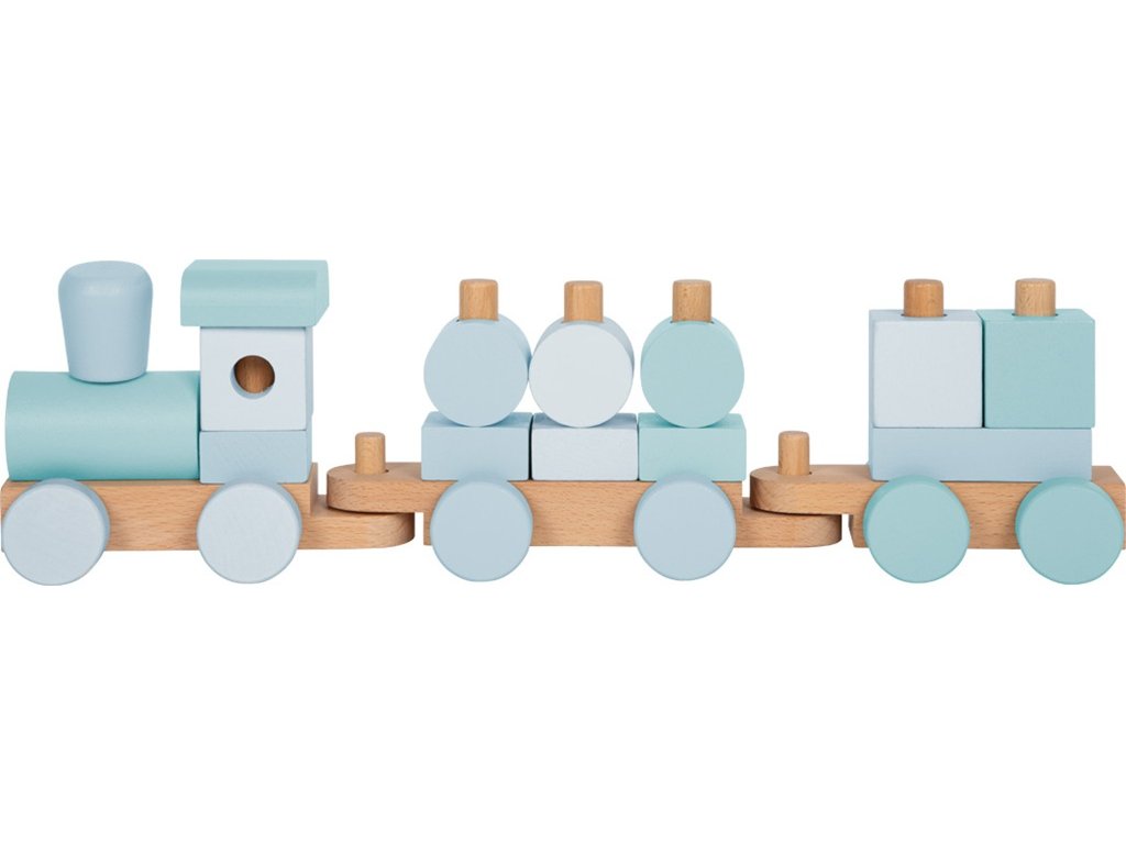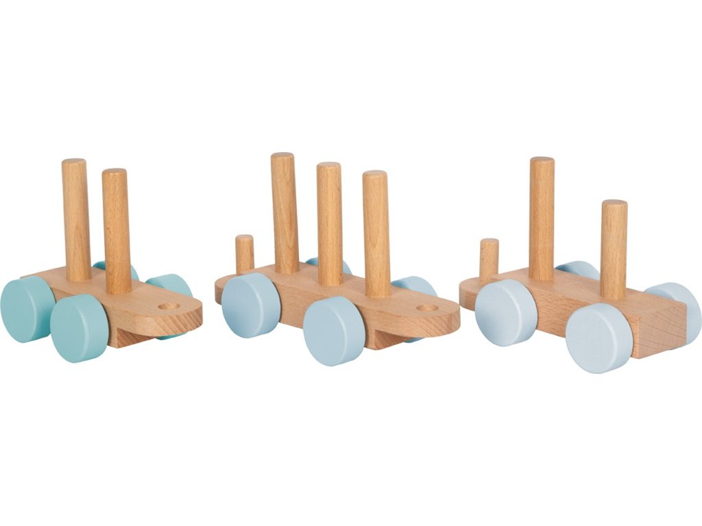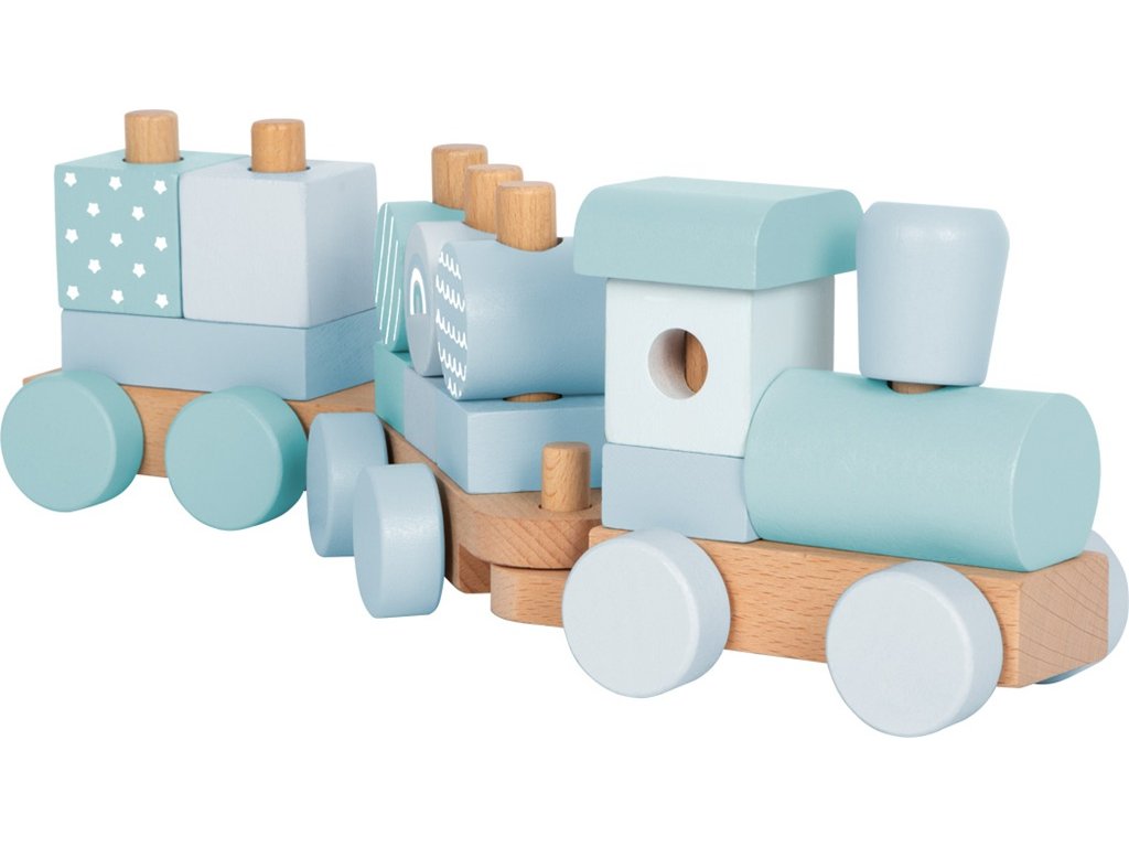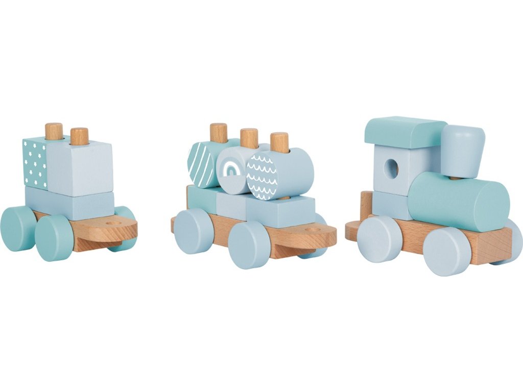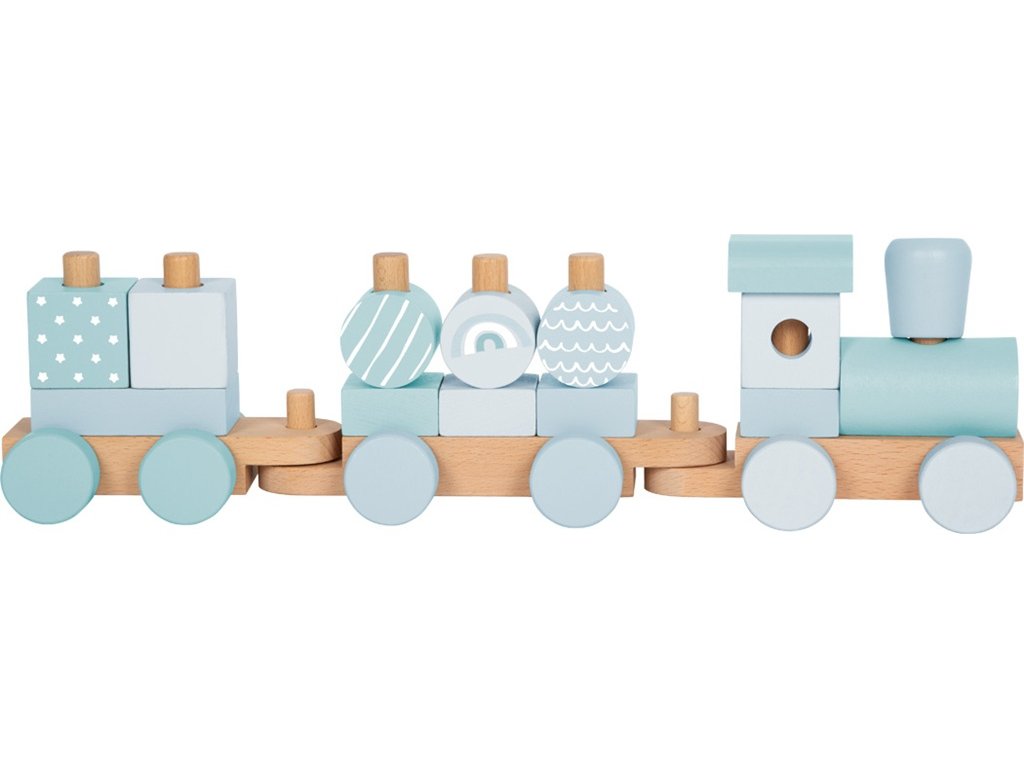 Dřevěný vláček v pastelových barvách s jemnými motivy nadchne každé malé dítě! Lokomotiva se dvěma vagónky a 14 barevně sladěnými stavebními dílky zve ke skládání, stavění i volné hře. Kostky se nasazují na dřevěné tyčky, a rozvíjejí tak jemnou motoriku i koordinaci pohybů. Jednotlivé dílky lze navíc libovolně kombinovat a používat i samostatně jako dřevěné kostky – ideální pro malé stavitele s velkou fantazií. Jemné barvy v kombinaci s přírodními tóny dřeva dělají z tohoto vláčku nejen zábavnou hračku, ale také krásnou dekoraci do dětského pokoje. Skvělý dárek pro jakoukoliv příležitost!