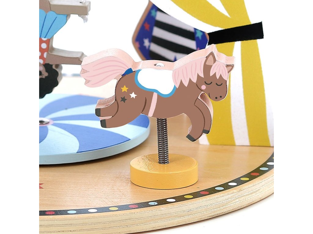 Objevte kouzelný svět pod cirkusovým stanem Vilac, ilustrovaný výtvarnicí Michelle Carlslund! Tato hravá dřevěná hračka nabízí šest interaktivních aktivit – od akrobatických kousků přes skákací pružiny až po optické iluze. Každý prvek zaujme dětské smysly, probudí zvídavost a podpoří fantazii.