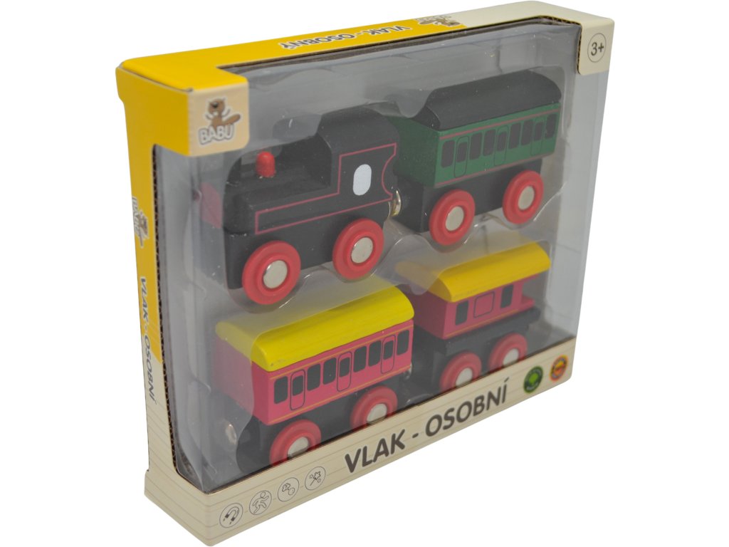 BABU Dřevěný osobní vláček – Klasika pro malé strojvedoucí