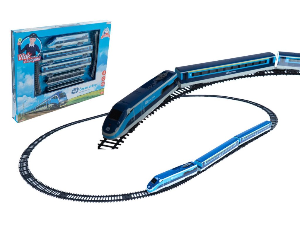 Sada s originálním vlakem od Českých drah obsahuje lokomotivu se dvěma vagóny i vláčkodráhu skládající se z 12ti zahnutých a 8mi rovných kolejí. Vlak vydává zvuk a svítí.Vhodné od 3 let.