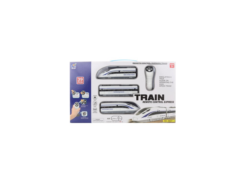 Vláčkodráha na dálkové ovládání. Balení obsahuje rychlovlak na baterie, koleje, značky a další doplňky. Mašinka lze ovládat na dálkové ovládání. Napájení vláčku na 3 AA baterie (nejsou součástí), napájení ovládání na 2 AA baterie (nejsou součástí). Rozměry složené vláčkodráhy cca 84 x 62 cm. Rozměry balení cca 48 x 28 x 5 cm. Věk 3+Doplňkové parametry