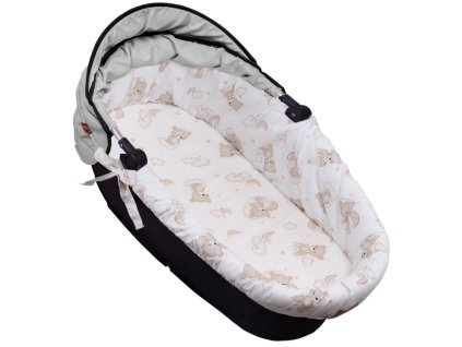 Bavlněná vložka do kočárků/koše s pěnovou matrací, Malý medvídek . béžová/bílá