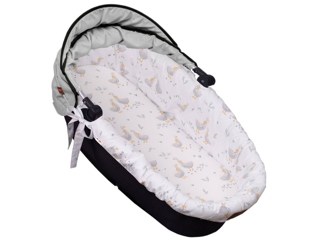 Bavlněná vložka do kočárků/koše s pěnovou matrací, Husy, bílá