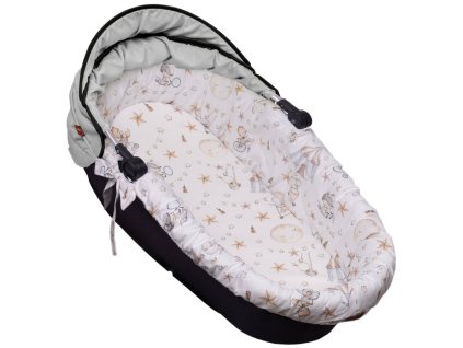Bavlněná vložka do kočárků/koše s pěnovou matrací, Malý medvídek . béžová/bílá