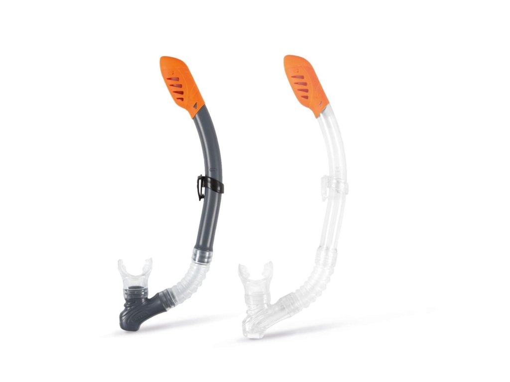 Šnorchl je vybavený spodním ventilem pro odtok vody, horním ventilem pro snížení možnosti vniknutí vody, silikonovým náústkem a klipem pro uchycení k masce.Rozměr balení: 18,5 x 47 cm