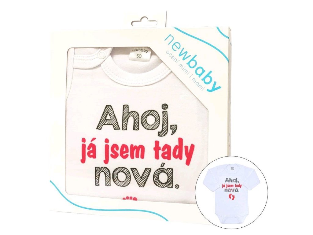 Body s potiskem New Baby Ahoj, já jsem tady nová - dárkové balení