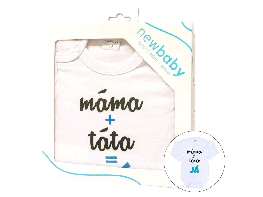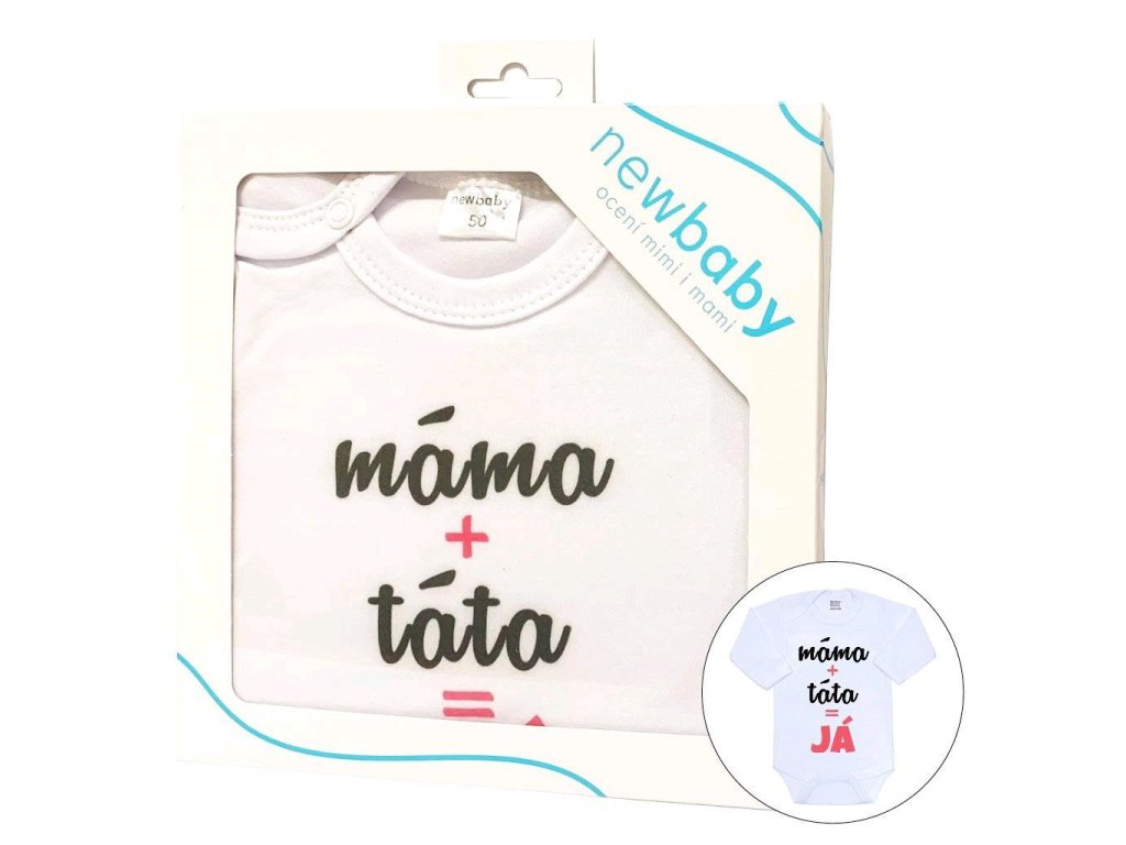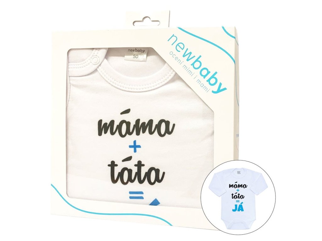 Body s potiskem New Baby máma plus táta rovná se JÁ - dárkové balení