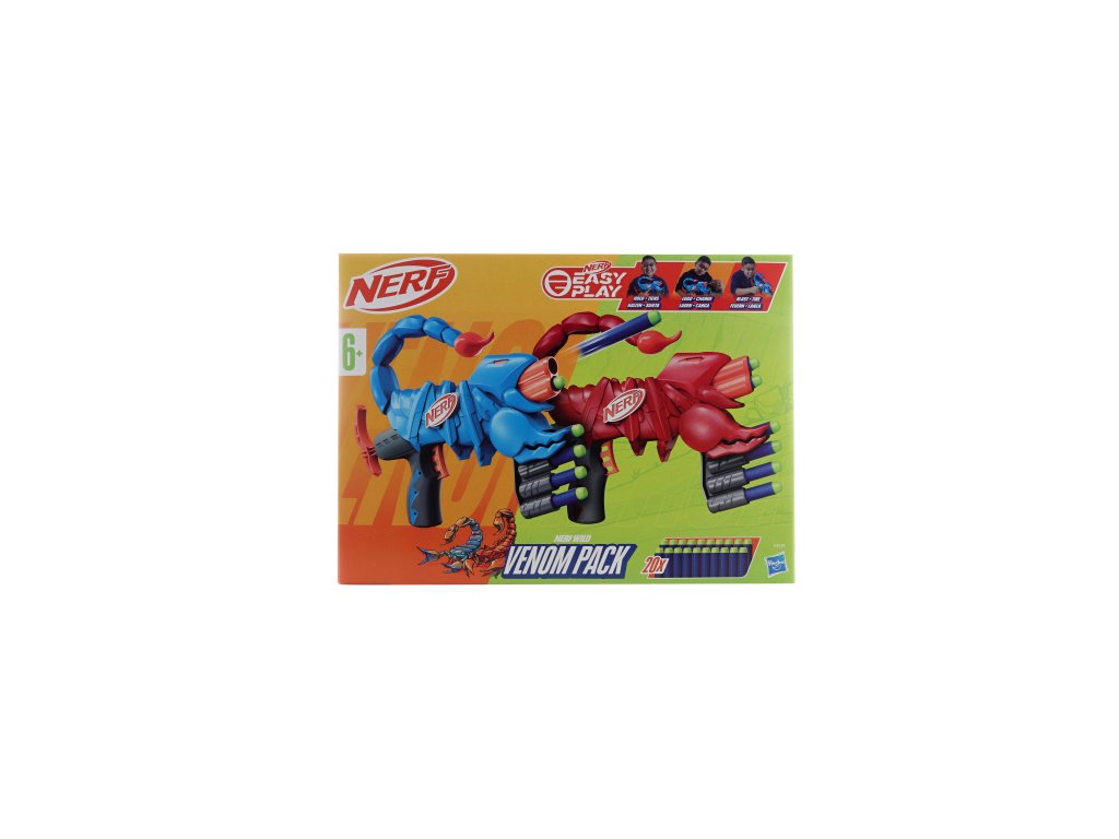 Blastery Nerf Wild jsou navrženy tak, aby se snadno používaly, takže malé děti ve věku od 6 let se s těmito stylovými blastery mohou bavit, aniž by potřebovaly asistenci. Snadno se uchopují, pohodlně padnou do malých rukou a jsou lehké, takže se snadno přenášejí. Šipky s předním plněním usnadňují nakládání a jejich nabíjecí rukojeť vyžaduje nejnižší tažnou sílu ze všech blasterů Nerf. Všechny tyto funkce umožňují malým dětem hrát střílení šipek samy. Jsou ideální pro dívky a chlapce, kteří si poprvé hrají s Nerfs. Balíček Nerf Wild Venompack obsahuje 2 blastery Nerf ve tvaru štíra, které opravdu připomínají střílení jedovatých zvířat! Každý scorpion blaster má kapacitu 2 šipek a vystřeluje je jednu po druhé. Balení obsahuje 20 šipek Nerf Elite z měkké pěny. Doporučené brýle (nejsou součástí balení). Věk 6+Doplňkové parametry
