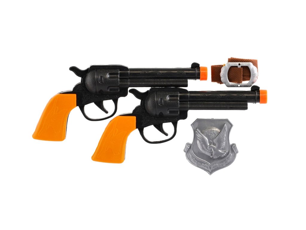 Pistole/kolt s pouzdrem 2ks kovbojská sada plast 16cm 2ks s doplňky v krabici