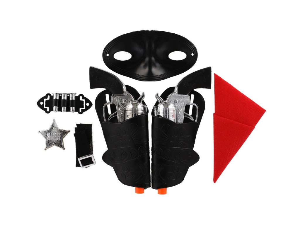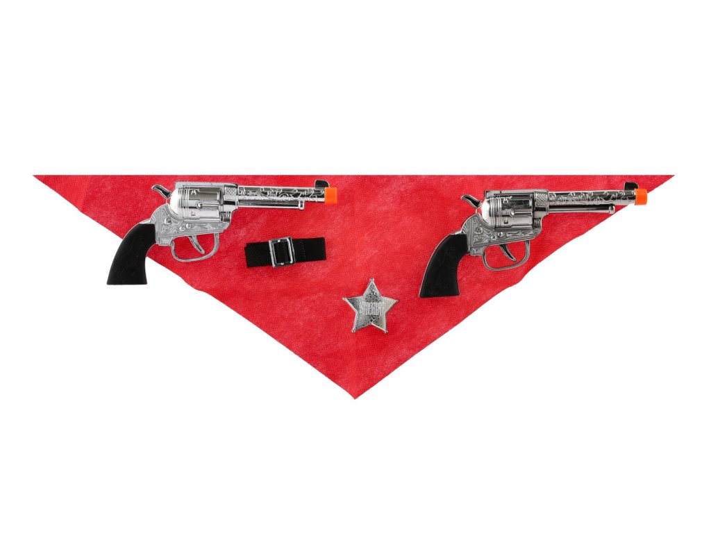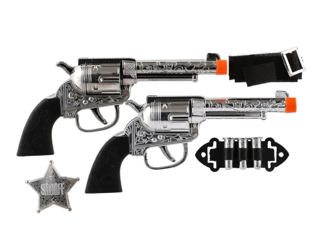 Život kovboje je snem spousty chlapců. S touto sadou 2ks pistolí se svému snu lehce přiblíží. Pistolky pro všechny malé pistolníky a kovboje. Sada obsahuje také odznak a spoustu dalších doplňkůRozměry balení 19 x 27 x 4 cm.