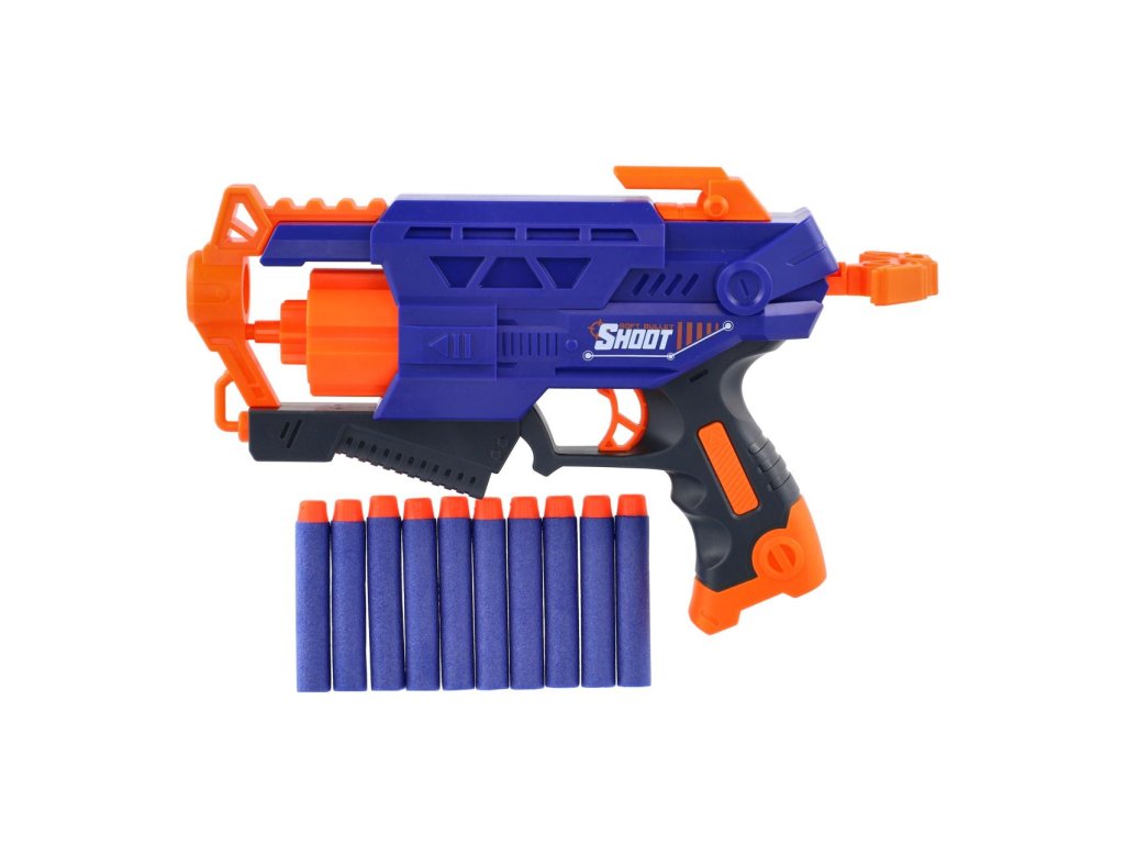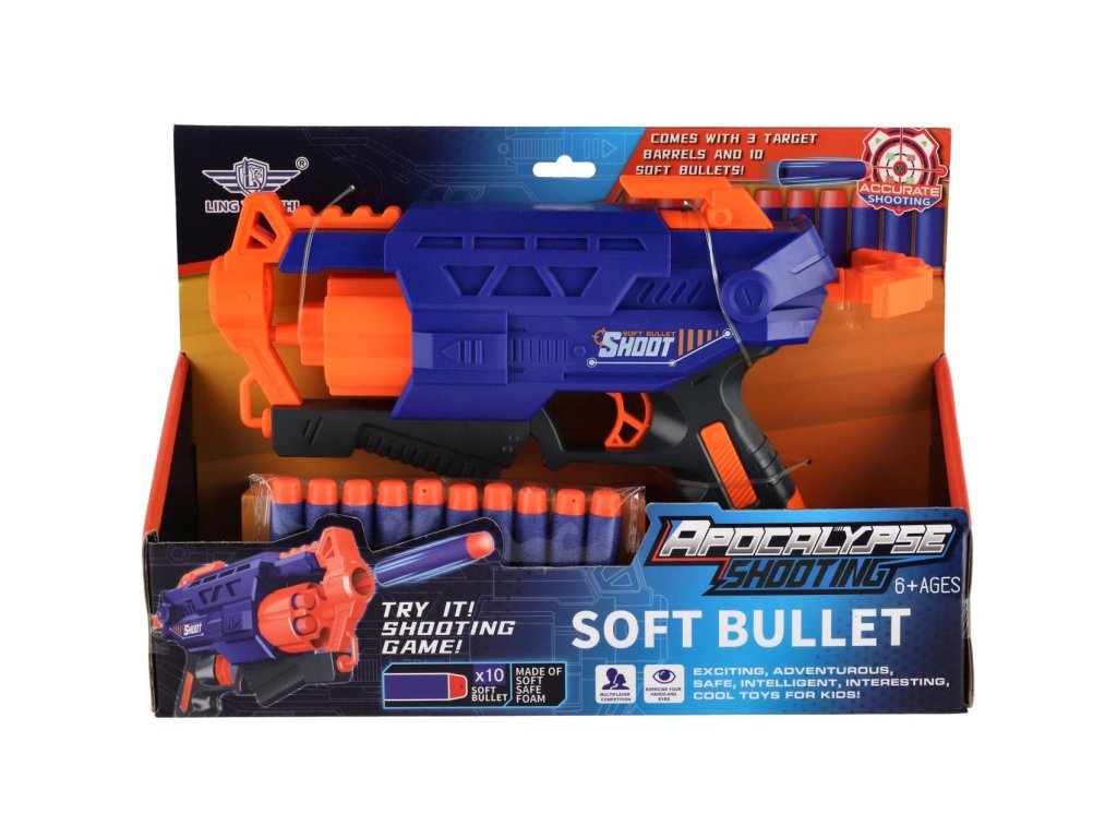 Pistole na pěnové náboje 28cm plast + 10 ks nábojů v krabici 31x22x7cm