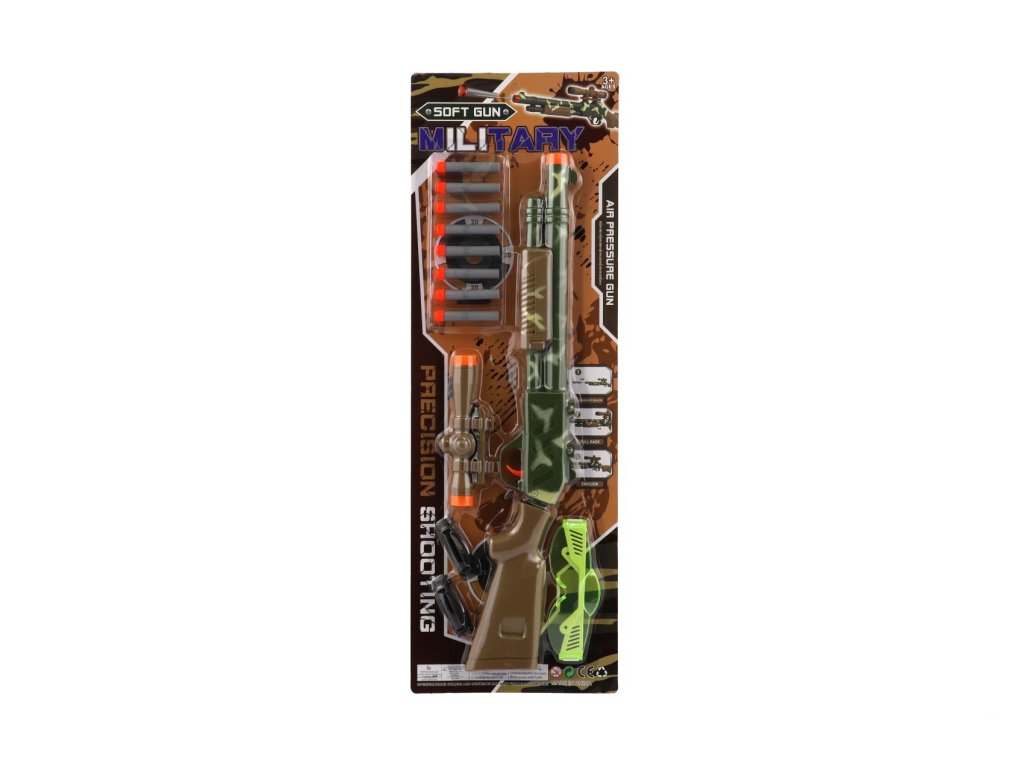 Pistole/Puška se zaměřovačem plast 51cm + pěnové náboje 8ks, brýle na kartě 21x62x3cm