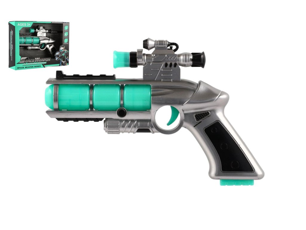 Pistole se zaměřovačem plast 20cm na baterie se zvukem a se světlem v krabici