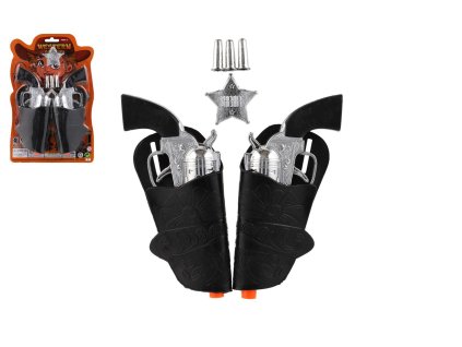 Pistole/kolt klapací s pouzdrem 2ks kovbojská sada plast s doplňky na kartě 19x29cm