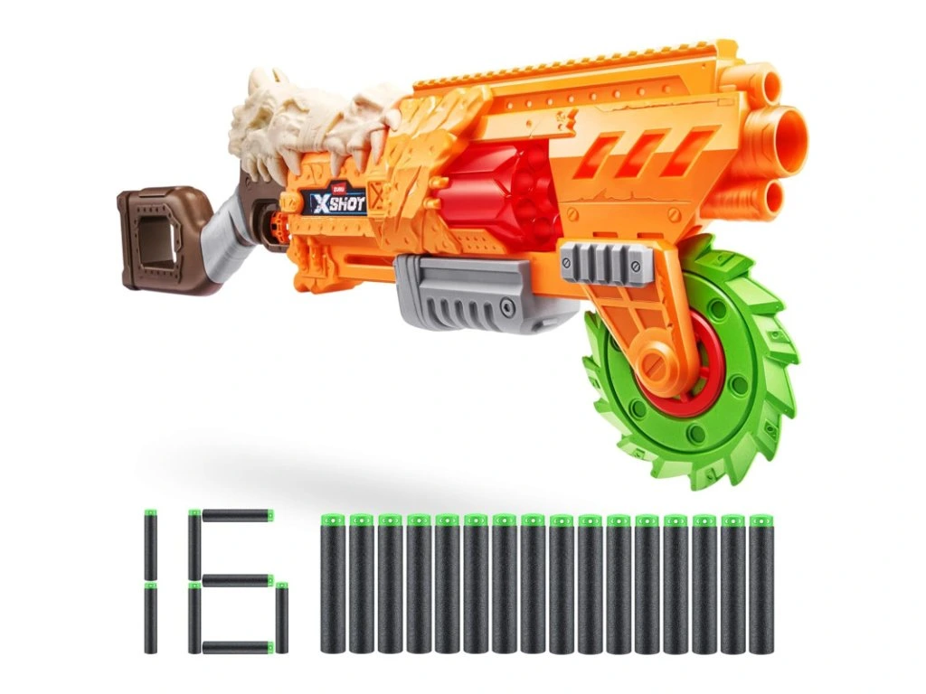 Unikátní XSHOT Insanity HorrorFire Doomsday se pyšní rotující pilovou čepelí, která se roztočí při každém natažení blasteru! Přináší tak zcela nový rozměr zábavy. Palebná síla Impozantní dostřel až 27 metrů Možnost zasáhnout více cílů najednou Vysoká přesnost střelby Kapacita šipek Rotační zásobník na 8 šipek Balení obsahuje 16 šipek Pumpovací systém nabíjení Připraveno k okamžité akci Technologie Air Pocket Šipky využívají pokročilou technologii Air Pocket Zajišťuje delší dostřel Vyšší rychlost střelby Přesnější zásahy Možnost kombinace Kompatibilní s ostatními blastery série Insanity HorrorFire Vytvoříte si vlastní unikátní kombinaci Rozšiřte své taktické možnosti Děsivě účinný blaster pro všechny, kdo chtějí vyniknout v soubojích a užít si maximum zábavy.Doplňkové parametry
