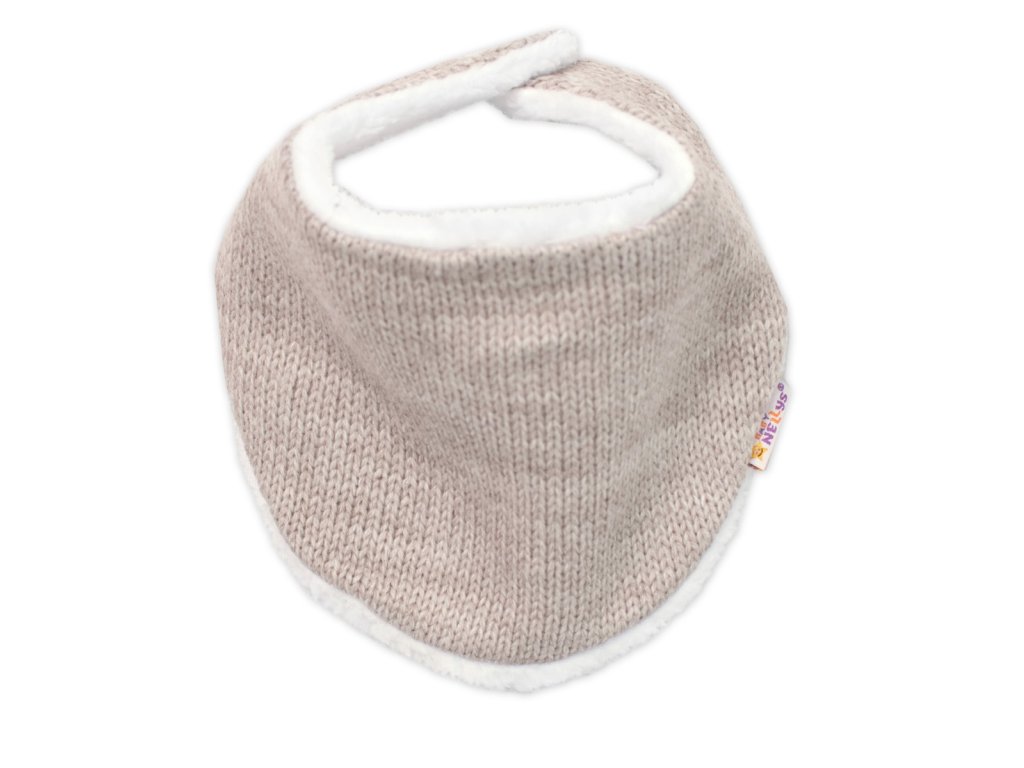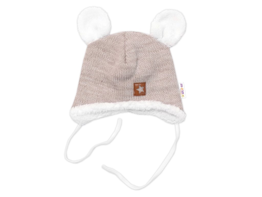 Baby Nellys Pletená zimní čepice s kožíškem a šátkem Star, béžová