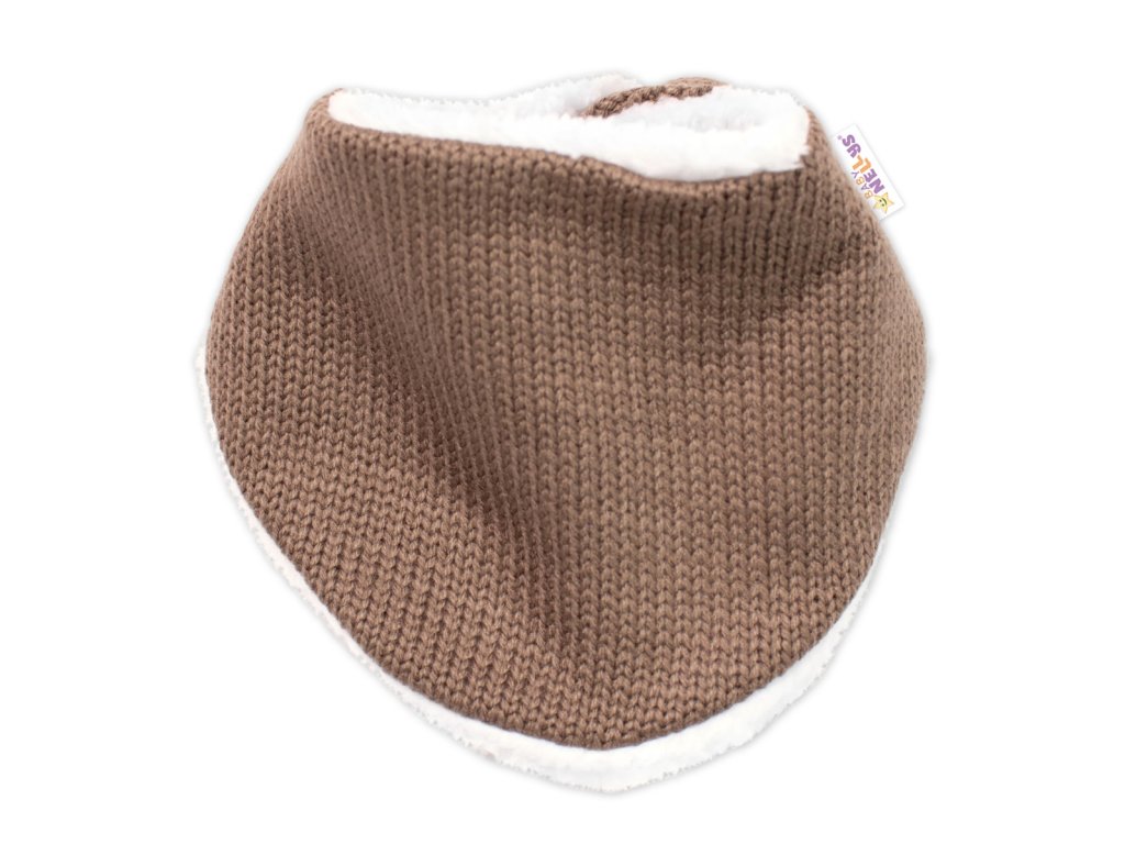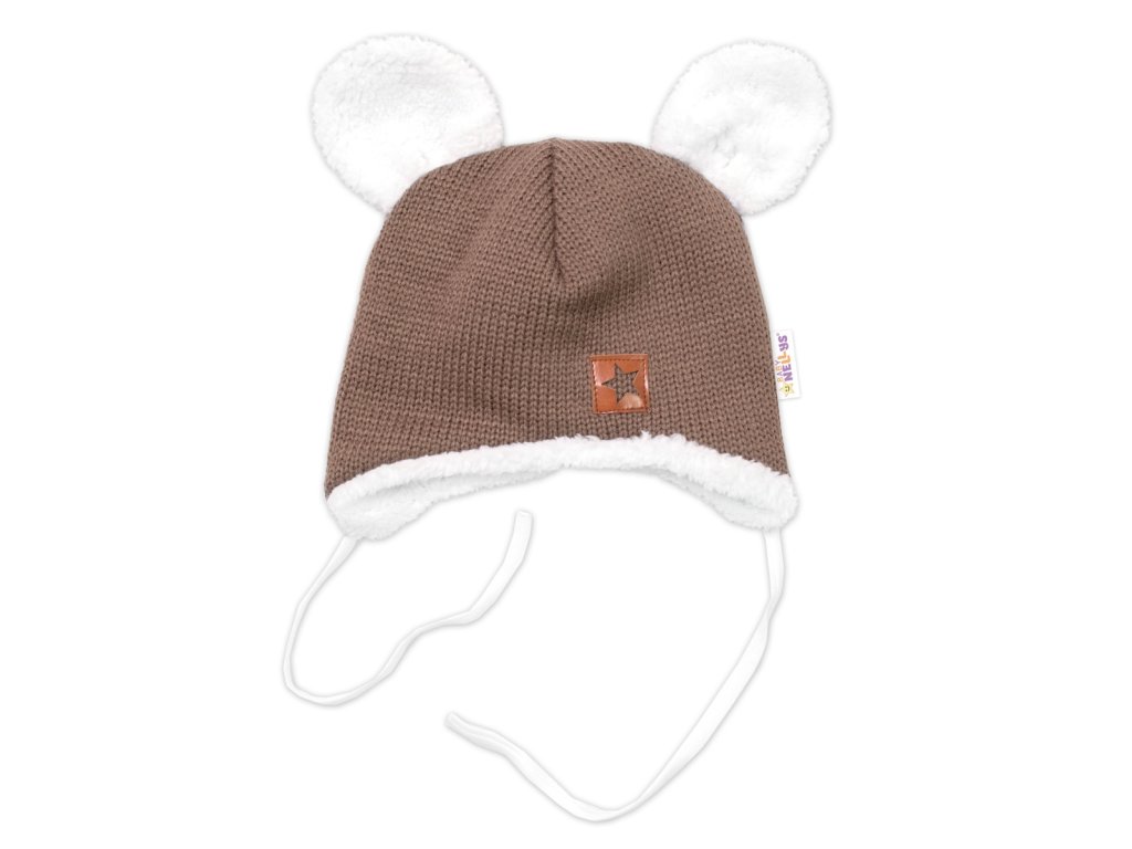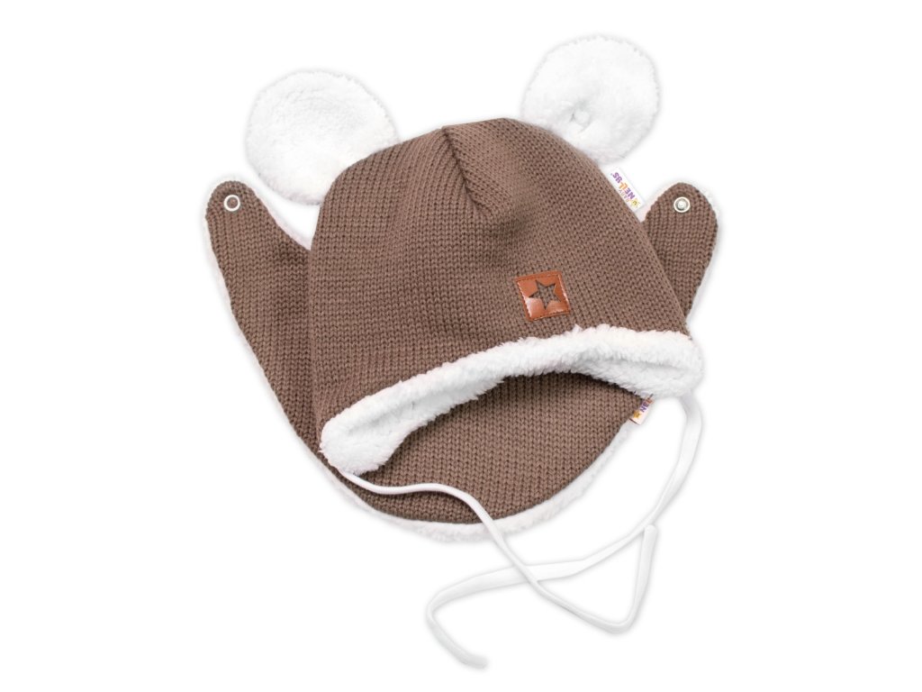 Baby Nellys Pletená zimní čepice s kožíškem a šátkem Star, hnědá