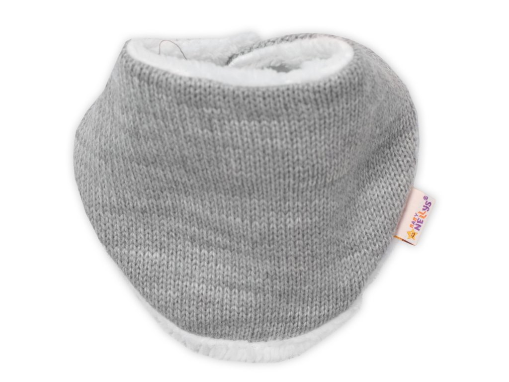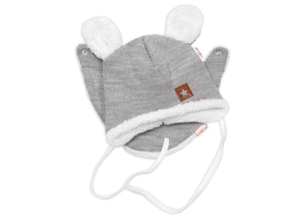 Baby Nellys Pletená zimní čepice s kožíškem a šátkem Star, šedá