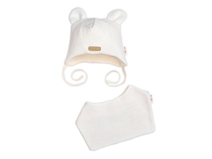 Pletená čepice s bavlněnou podšívkou a šátkem 2v1, Teddy Hand made - kokosové bílá