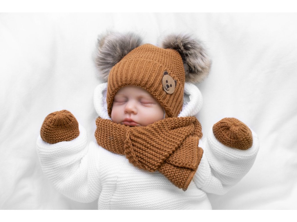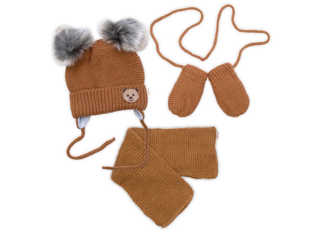 Dětská sada, zimní čepice s šálou + rukavičky 3D, Teddy Bear - hnědá
