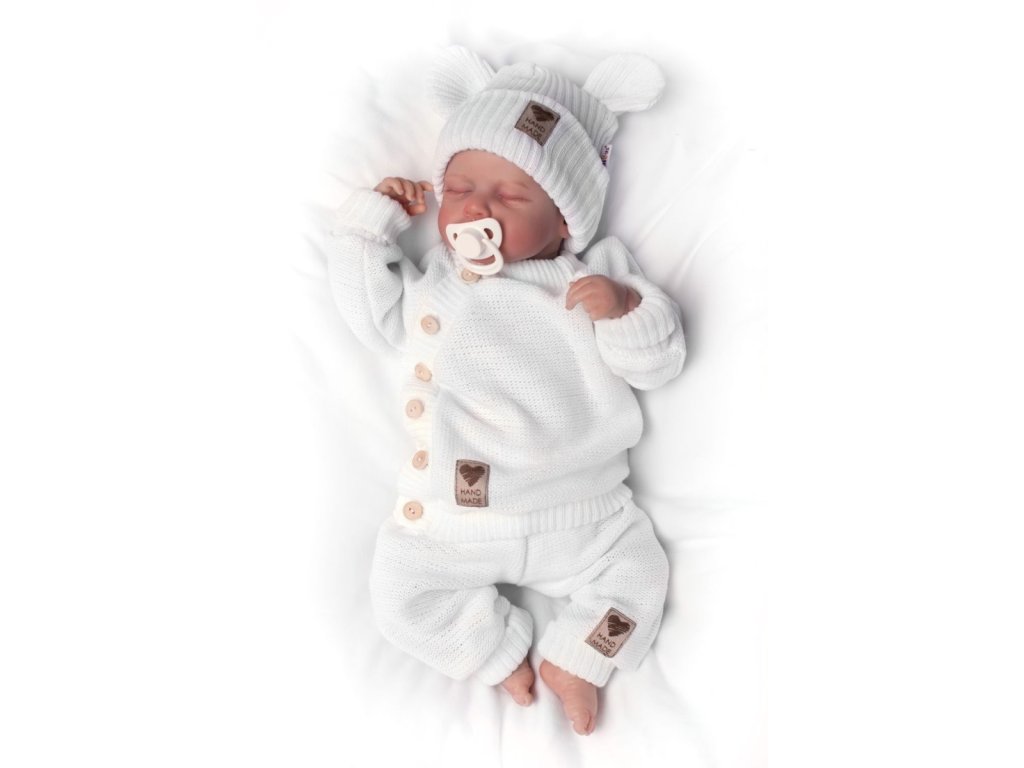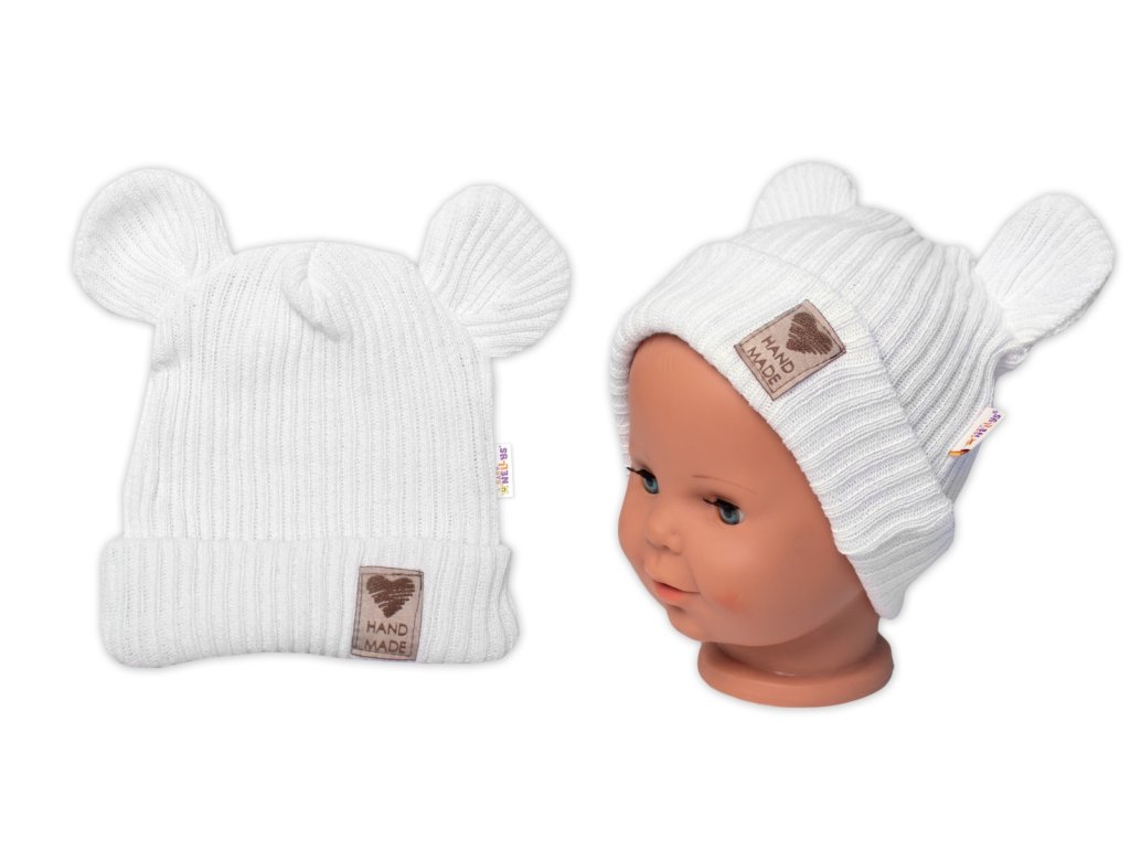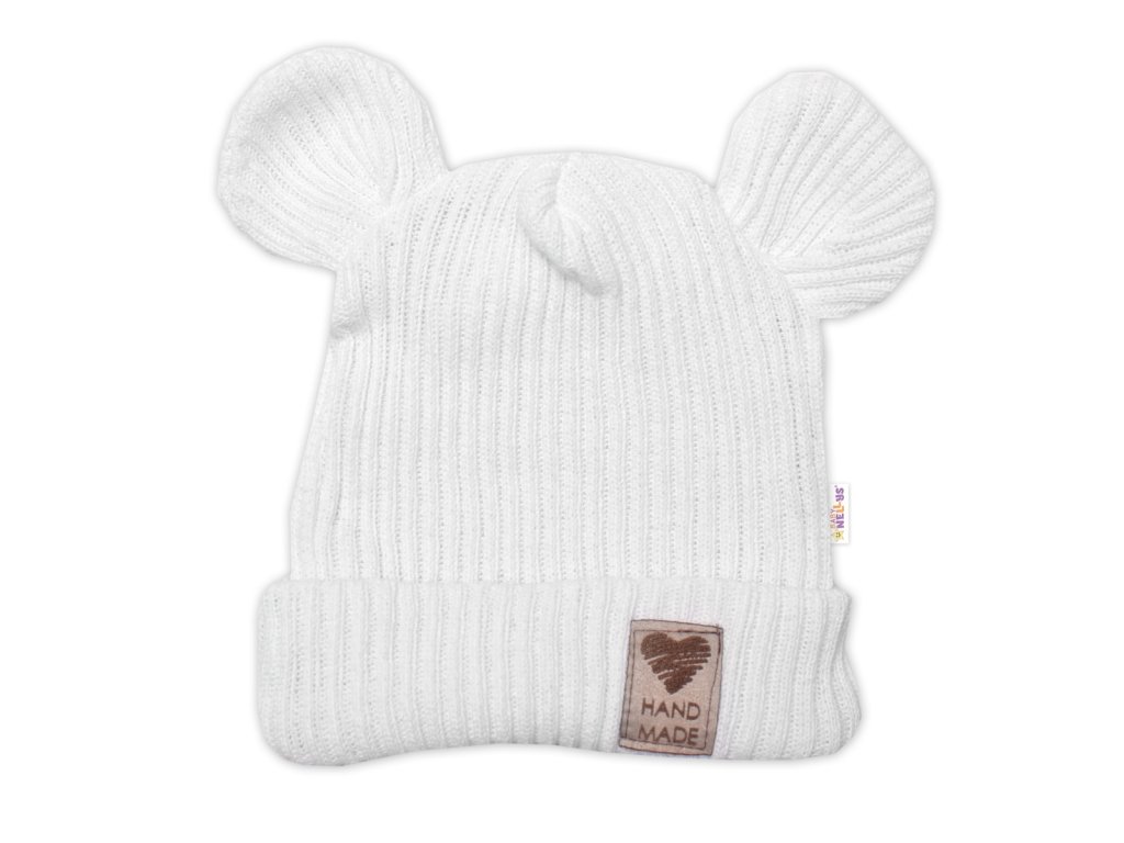 Pletená bavlněná čepice s oušky, dvouvrstvá, Hand Made Baby Nellys, bílá