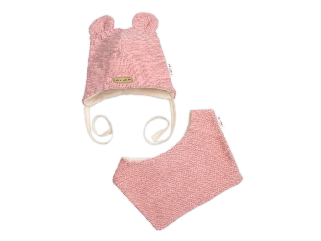 Pletená čepice s bavlněnou podšívkou a šátkem 2v1, Teddy Hand made - růžová