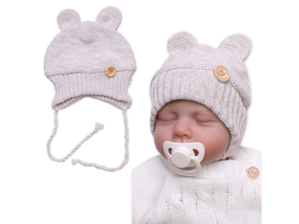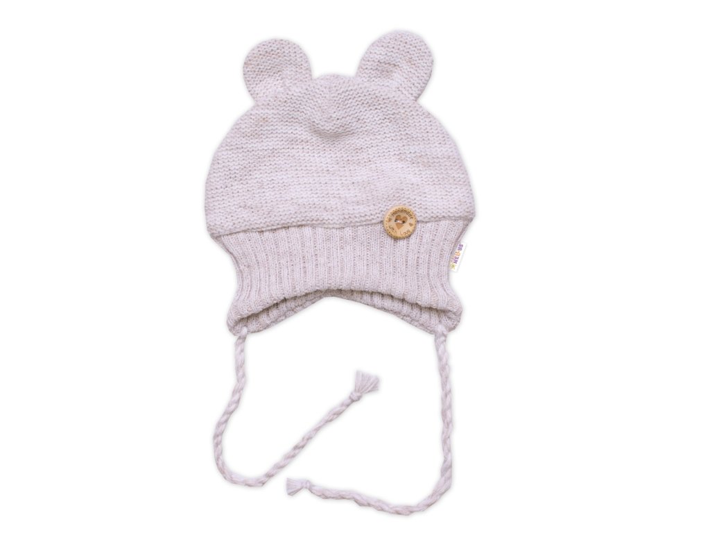 Pletená čepice s oušky na zavazování Made with Love, béžový melírek