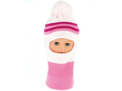 BABY NELLYS Zimní čepička/kukla s bambuli - sv. růžová s proužky