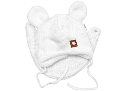 Baby Nellys Pletená zimní čepice s kožíškem a šátkem Star, bílá