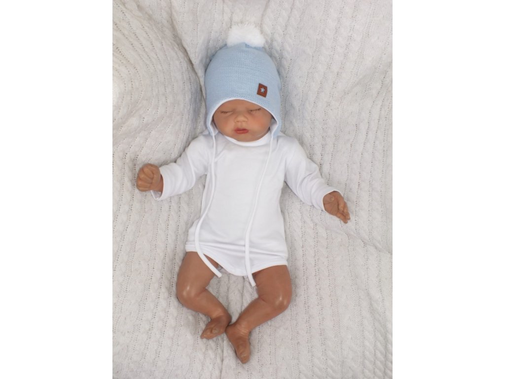 Zimní pletená čepice Teddy Bear na zavazování, bílá, smetanová, Baby Nellys