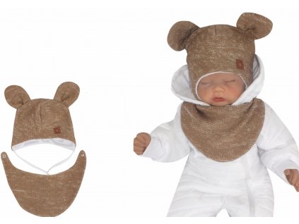 Z&Z Dvouvrstvá pletená čepice na zavazování s šátkem 2v1, Méďa - hnědá
